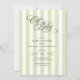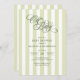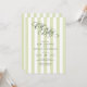 Um elegante convite para chuveiros de bebês, verdes e listrados, todos em um, neutros em termos de gênero, com um design duplo, oferece uma na moda e uma maneira coordenada de celebrar um bebê no caminho. A frente exibe faixas verticais verdes e pastéis suaves com um fundo branco nítido, lindamente emparelhadas com um roteiro gracioso para o título "Oh Baby" e texto serif refinado para os detalhes do evento. O verso continua o olhar coeso, com seções para informações de RSVP, um poema "Livros para Bebê" entusiasmado encorajando os convidados a trazer um livro especial, e uma seção de "rifa de Fralda" para uma atividade divertida e prática de chá. Perfeito para os chás de fraldas tradicionais neutros em termos de gênero, este design de convite multifunções combina beleza, funcionalidade e toques sentimentais, criando uma manutenção elegante e memorável para os convidados. Disponível como placas impressas ou um download digital instantâneo.