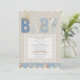 Convite Oh, Bebê Rústica Madeira Lace Blue Ivory Boy