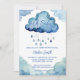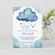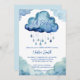 Oh, chá de fraldas de convite para modelo de nuvem de bebê convite para download digital instantâneo, nuvens azuis de cor aquática fofinha com convite para chá de fraldas de gotas de chuva