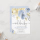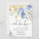Convite Oh chá de fraldas floral amarelo azul empoeirado