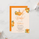 Querida! Anuncie seu próximo chá de fraldas com nossos convites inspirados no véu, com abóbora de laranja fofa e charmosa e aquarela floral branca com laranja, caia na abóbora do Halloween com buquê de girassóis rústicos em laranja claro. O moderno roteiro de pincel adiciona um toque de elegância a esses convites únicos que são perfeitos para qualquer queda de boho ou celebração temática de Halloween, perfeito para o exterior e festa de jardim.