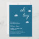 Celebre seu pequeno no caminho com este charmoso convite de chá de fraldas " Oh Boy". Apresentando um fundo azul doce com nuvens brancas lisas e um roteiro elegante, é o convite perfeito para uma feliz celebração de menino. Personalize facilmente os detalhes do evento e torne-o verdadeiramente seu.