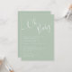 Para aqueles que procuram uma design moderna minimalista para o vosso chá de fraldas, este convite é perfeito para vós. O simples design apresenta um cartão verde claro com oh baby na tipografia de script branco. Personalize com todos os seus detalhes importantes, incluindo o nome da mãe a ser, data, hora, local, RSVP e informações de registro.
