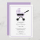 Convite para Chá de fraldas de Gingham Pram. Lavanda e branco. Querida. Garota.