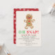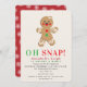 Seja alegre e comemore em estilo com esta tendência e este divertido convite para chás de fraldas de férias. Este design apresenta um pão de gengibre surpreso com a frase "de snap" contra fundo de creme leve. O reverso é um fundo vermelho com um padrão de flocos de neve brancos. Você pode personalizar totalmente esses convites para atender às suas próprias necessidades.