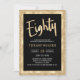 Este é um convite de 80 com um brilho dourado e design de folha de papel. cara preto branco de ouro brilhante brilhando cintilante menina menina menina cara 80 80 oitenta e oitenta