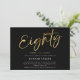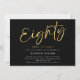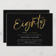 Este é um elegante convite de aniversário 80 de surpresa preto e ouro. É um simples e na moda, design de guião manuscrito em preto clássico, branco e ouro. Entre em contato com o designer para obter informações sobre este design.