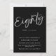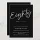 Este é um convite de aniversário de surpresa 80 simples e moderno. É um design de script simples e na moda, escrito à mão, em preto clássico e branco. Entre em contato com o designer para obter informações sobre este design.
