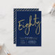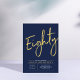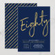 Celebre seu dia especial com este convite de festa de 80 anos simples e elegante. Este design apresenta uma escrita "Oitenta" em estilo pincel com um layout limpo na combinação de cores azul marinho e dourado. Mais designs e suprimentos para festas estão disponíveis na minha loja BaraBomDesign.