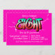 Um convite de grafite rosa brilhante desorganizado adequado para uma criança de oito 8 anos.
