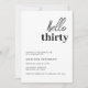 Comemore seu aniversário em estilo com nosso "Olá, Trinta Modernos Convites de aniversário Preto e Branco". Este design de convite apresenta uma escrita simples, ousada trinta, e outros detalhes na tipografia minimalista, Perfeito para uma festa de aniversário moderna.
