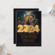 Convite de Olá Ano Novo Ouro Preto Moderno Personalizado Adicionar Ano 2024
