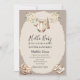 Olá bebê cores neutras bege claro, marrons claros e flores brancas. Toque perfeito para o seu chá de bebê! Parabéns pela gravidez!
