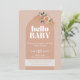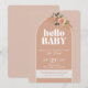 Ao inspirar-se na design do século médio e minimalista, este convite trará uma sensação de "boho chic" para o seu evento. Ideal para um chá de fraldas, um brunch para bebês ou um chá alto - você pode personalizar a descrição para se adequar ao seu evento! Manchete: "Olá, Bebê". Tons cor-de-rosa e bege e sotaque floral.