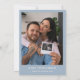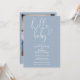 Este convite de chá de bebê com letra elegante em azul pó pode ser personalizado com todas as informações da sua celebração especial e foto especial no verso. Criado por Thisisnotme©