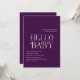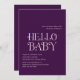Convite para chás de fraldas moderno com um layout mínimo com "Hello Baby" em tipografia ousada no meio. Todos os elementos de design estão em ameixa roxa e marfim e podem ser alterados na ferramenta de edição de design. Este simples mas elegante convite de chá de fraldas é excelente para qualquer estilo de chá de fraldas feminino.