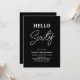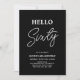 Convide seus convidados com este convite de aniversário de 60 anos elegante. Este design apresenta uma fonte moderna "Olá Sessenta" em preto e branco. Você pode personalizar todo o texto. Suprimentos para festa correspondentes estão disponíveis na minha loja BaraBomDesign.