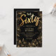 Convite Olá Sessenta Preto e Dourado Floral 60º Aniversári