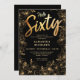 É o seu 60º aniversário! Tanta vida, tanta diversão, tantos amigos. Celebre com um convite que apresenta um padrão floral de preto e ouro para receber seus convidados a uma festa de diversão.