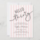 Celebre os 30 anos com estilo com este convite chique que apresenta tipografia moderna que diz “Olá Trinta”. Contra um fundo listrado de rosa suave e branco, seu design limpo e elegante torna-o uma escolha perfeita para o seu dia especial.