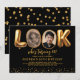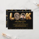 Convite moderno de 60º aniversário para adultos com fundo preto elegante, design divertido "olha quem está fazendo 60!" com as duas letras "O" trocadas por fotos do antes e depois, e uma borda cintilante dourada na parte inferior. O modelo de texto fácil de personalizar torna simples a customização dos detalhes do seu evento. Crie o cenário para uma celebração sofisticada com um toque de diversão e uma exibição de fotos memoráveis. Personalize o seu e faça da festa um evento inesquecível.
