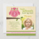 Convide os convidados para o segundo aniversário do seu pequeno com este adorável convite de foto de coruja rosa, apresentando "Olhe quem está fazendo dois anos!" em rosa e verde oliva divertidos. Uma doce coruja ilustrada se empoleira em um galho ao lado de um espaço emoldurado para a foto do seu filho, com detalhes listrados em rosa e verde na parte inferior. O verso apresenta um charmoso padrão de árvores coloridas da floresta em tons rosa, verde e marrom. Todo o texto é totalmente personalizável para combinar com os detalhes da sua celebração.