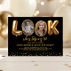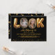 Convite de 50º aniversário moderno para adultos com fundo preto elegante, design divertido "veja quem está fazendo 50 anos!" com as duas letras O trocadas por fotos de antes e depois, e uma borda de glitter dourado brilhante na parte inferior. O modelo de texto fácil de personalizar torna simples a customização dos detalhes do seu evento. Crie o cenário para uma celebração sofisticada com um toque de diversão e uma exibição de fotos memoráveis. Personalize o seu e faça da festa um evento inesquecível.