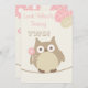 Modelo do convite da celebração da festa de aniversário do bebê da coruja das meninas elegantes, personalizadas em segundo, com a coruja bonito, moderna, contemporânea, dos desenhos animados do vetor da ilustração, em cores marrons e bege, sentando-se em um fio, guardarando uma flor cor-de-rosa bonito. O fundo é bege/tan e há folhas estilizados dos desenhos animados no canto. Na moda, convites lunáticos, elegantes, chiques, femininos, feitos sob encomenda para o segundo aniversário do bebé. Este o divertimento, corujas femininos, bonitos, na moda, elegantes convida modelos é decorado em ambos os lados/tem o dobro tomou partido imprimindo a parte dianteira e a parte traseira impressas /are. Os desenhos animados doces e adoráveis, bonitos, da coruja e as flores convidam, aperfeiçoam para aniversários do primavera e do verão, mas também apropriado para celebrações a qualquer hora do ano. Todo o texto na parte dianteira e no verso é inteiramente customizável/personalizable encontrar suas necessidades. Se você precisa o auxílio que personaliza seu produto me contacta por favor através de minha loja e eu estarei feliz ajudar. NOTE POR FAVOR: Todos os produtos em Zazzle têm imagens impressas do plano.