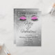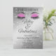 Celebre o marco dos cinquenta anos com este convite de aniversário preto e rosa elegante e glamoroso. Adornado com olhos brilhantes cor-de-rosa e brilhos de diamante. Personalize com um nome. Criado por Simply Farmhouse Press na Zazzle.