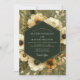 Evoke a sense of moody romance with this artistic botanical design. Lush, painterly anemones in shades of cream and butter yellow bloom gracefully amongst delicate green foliage. The rich olive and sage green palette creates a sophisticated, earthy atmosphere for a vintage-inspired union.