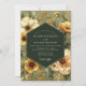 Immerse your special day in vintage botanical elegance. This design features a lush arrangement of painterly anemones in shades of cream and golden ochre, set against a backdrop of muted olive green. Soft sage foliage and delicate wildflowers complete this romantic, earthy composition for a timeless affair.