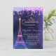 Convite Ombre Glitter Torre Eiffel Tiara Conduz Quinceañer
