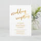 A distinção deste conjunto arrojado e simples se deve à fonte manuscrita moderna e casual usada para frases de destaque e ao padrão de ondas soltas colocado sobre o fundo. As ondas evocam a ideia de serpentinas comemorativas. Nesta peça, a fonte manuscrita foi usada para criar um gráfico que representa as palavras "recepção de casamento". Tanto este texto de cabeçalho quanto o padrão de fundo foram adornados com um padrão de folha de ouro falso. Use os campos do modelo para adicionar seus detalhes pessoais e tornar este design festivo seu. O fundo branco pode ser alterado para qualquer cor que você preferir. Entre em contato conosco para solicitações especiais ou para obter ajuda na personalização. // 100 //