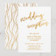 Convite Ondas Douradas e Caligrafia Recepção de Casamento