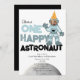 A cute hand drawn astronaut and space birthday invitation design. A cute "One happy astronaut" space themed first birthday party invitation. A cute astronaut themed birthday invitation that can be customized to your details.