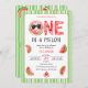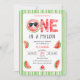 Make your little one's first birthday a "juicy" affair with our "One in a Melon" summer party invitation! This delightful design captures the fun of a watermelon theme, complete with a watermelon slice in sunglasses as the "O" in "ONE" and sweet watermelon details. A fresh green and white striped frame adorns the front, while the back mirrors this pattern with playful watermelon accents, setting the perfect tone for a memorable first birthday.