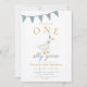 Convite ONE Silly Goose Blue Gingham Boy First Birthday