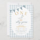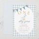 Convite ONE Silly Goose Blue Gingham Daisy First Birthday