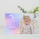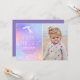Este convite de aniversário de Sereia do Oneder the Sea verifica todas as caixas para um primeiro aniversario perfeito. O brilhante e colorido gradiente e o rabo de sereia brilhando é a combinação perfeita de diversão festiva. A elegante fonte e a divertida cauda da sereia fazem deste cartão uma escolha divertida e na moda para dar o tom para um primeiro aniversário!