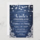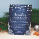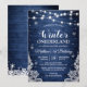 Celebre o primeiro aniversário do seu pequeno com este convite rústico de Inverno Onederland! O design azul apresenta flocos de neve, luzes de corda e uma cena de inverno encantado. É a maneira perfeita de convidar seus convidados para um dia especial de celebração.