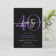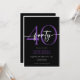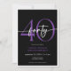 Moderno e chic, este convite de aniversário combina preto clássico e branco com sotaques de roxo brilhante. É um design mínimo é um design simples e divertido para celebrar o aniversário do marco. A parte de trás é um simples padrão de bolinhas. Criado pela imprensa simplesmente de farmácia.