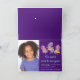 Três unicórnios roxos e cor-de-rosa convidam amigos e família para a festa de aniversário do seu filho. Enquanto o texto do modelo diz cinco, você pode mudar o número para qualquer aniversário que quiser. Há três linhas de texto na frente para que você personalize seu convite. A dentro apresenta uma foto do seu filho no lado esquerdo e os detalhes de aniversário à direita. O convite para o aniversário de uma criança brilhante e colorida, que lhe permite personalizá-lo muito facilmente.