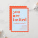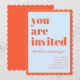 This birthday invitation features bold typography paired with a playful scalloped border for a fun, confident look in blue and orange. A great choice for milestone birthdays, cocktail-style parties, or stylish adult celebrations.