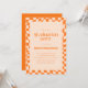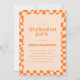This graduation party invitation features a modern retro orange checker border with a clean cream center and bold typography. Designed for high school or college graduation celebrations, it feels current, confident, and teen-approved without being childish. The structured layout keeps all event details clear and easy to read while still making a statement. Personalize with your graduate’s name, date, time, and location for a polished party invite that stands out.