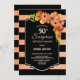 Convite Orange Floral Black Striped 50º Janto de aniversár