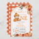 Urso Corvo Laranja Pumpkin Gingham Primeiro Convite de Aniversário Boho Nossa abóbora está virando um convite de aniversário para Orange Gingham