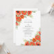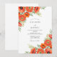 This vibrant design features bright orange poppies and delicate ranunculus blooms in a watercolor style. Lush green foliage adds a fresh, natural element against the crisp white backdrop. Perfect for a warm-weather event, the palette evokes a cheerful and sunny atmosphere for a romantic occasion.