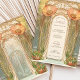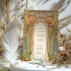 Bem-vindos aos seus convidados com este encantador convite de casamento inspirado no Art Nouveau, com um grande arco floral adornado com papoilas de laranja vibrantes e videiras delicadas. Os intrincados detalhes no estilo de vidro manchado em verde macio, creme e matizes pastel criam uma aparência harmoniosa e eterno. Perfeito para casamentos de vintage, botânica ou de jardim, esse design capta a essência da elegância e do romance. As costas mostram a continuação do estilo artístico, oferecendo uma mistura perfeita de beleza natural e sofisticação. Totalmente personalizável para incluir seus detalhes pessoais.