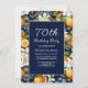 Convite Oranges White Flowers Navy Blue 70th Birthday