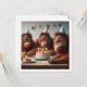 Um convite muito legal para retratar orangotangos sentados em uma mesa da cozinha celebrando com um bolo de aniversário e chapéus de festa, um convite para excelentes para amantes de orangotango, amantes de macacos e amantes de zoológico. O cartão pode ser totalmente editado e personalizado para ajustado das suas necessidades.